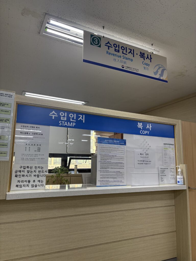 滞在期間延長には、追加で30000ウォンが必要となるようなので、その左隣にある窓口で3万ウォン分の収入印紙を買います。